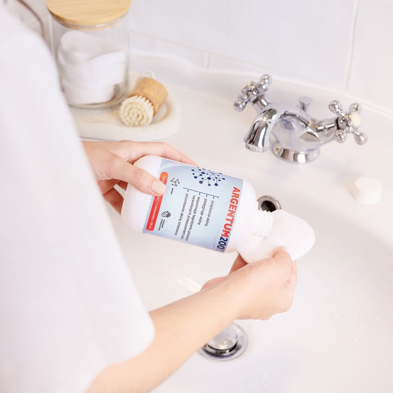 Apply a small amount of the product to a gauze pad or cotton pad. Gently wipe the skin of the face, avoiding the eye and mouth areas. For best results, use twice a day, morning and evening after washing your face. The product should not be used by children, pregnant women or people allergic to silver.