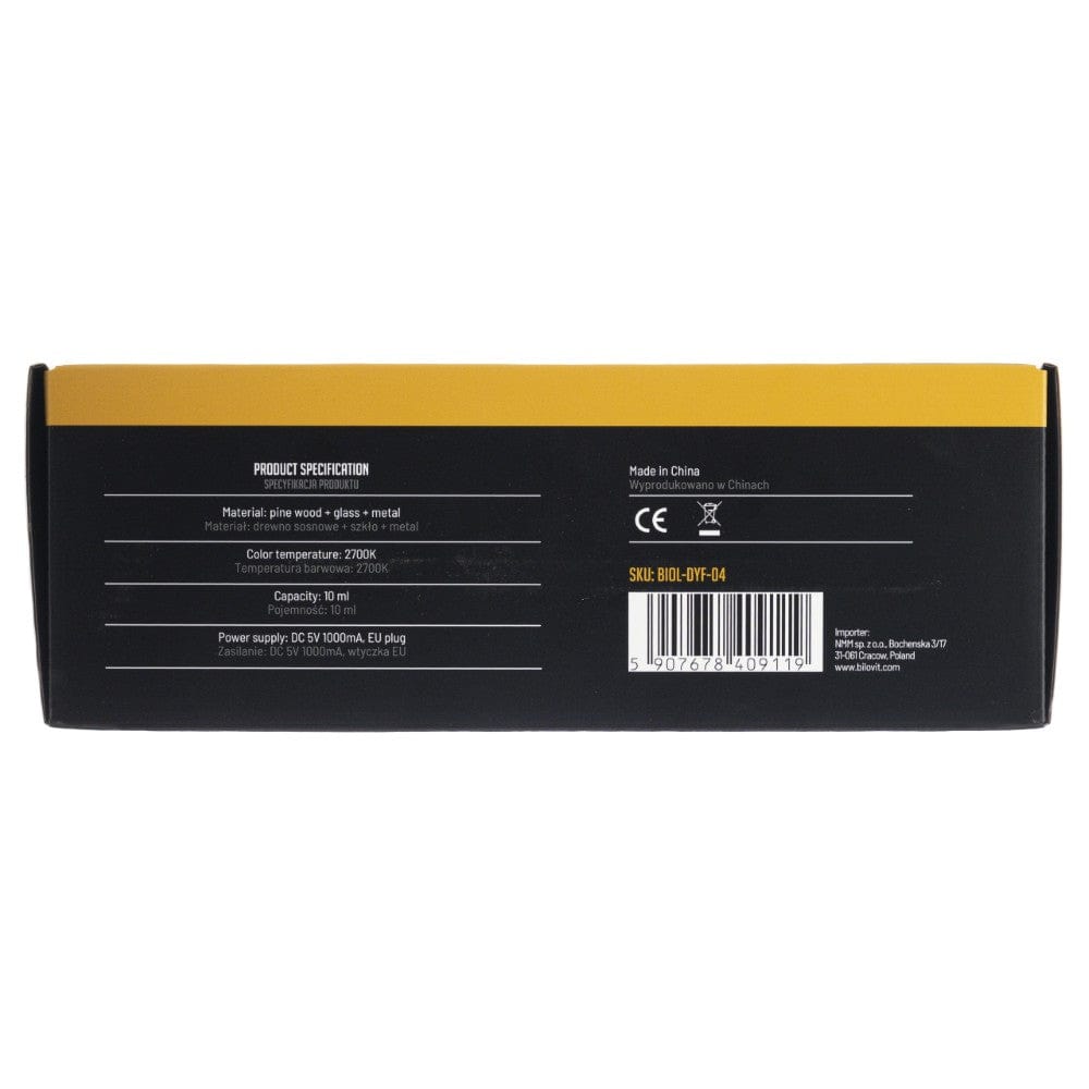 Den eteriska oljan nebulisator med en glödlampa från Bilovit är ett elegant tillskott till alla interiörer, som kombinerar funktionalitet med modern design. Tillverkad av furu, glas och metall, den fångar ögat med sitt subtila utseende, och den justerbara glödlampan skapar en varm, atmosfärisk stämning.