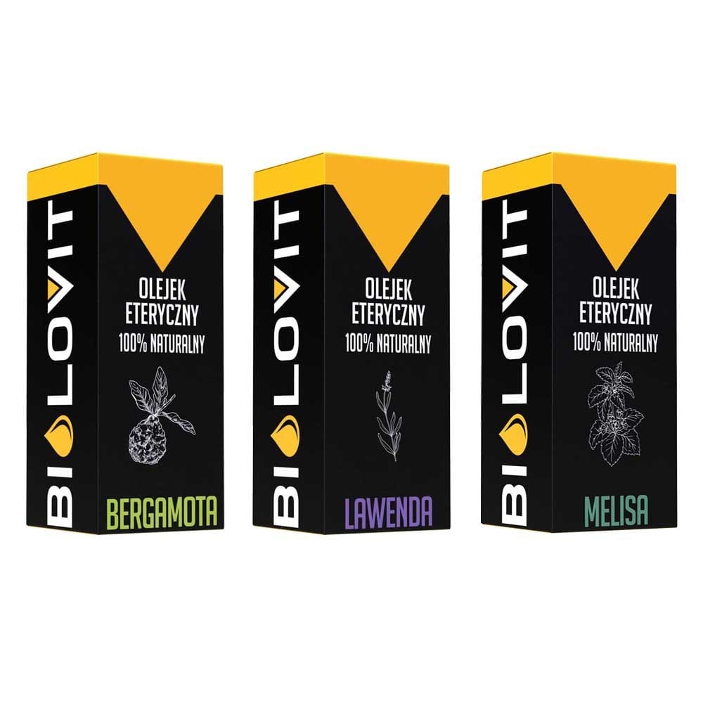 Set med eteriska oljor för sömn från Bilovit. Sömnsetet består av bergamott , lavendel och ylang oljor.