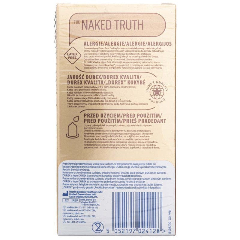 Durex Real Feel-kondomer tillverkade av latexfri polyisopren, som har mer elasticitet än naturgummilatex och är mjukare, vilket gör dem bekvämare att använda och ger en bättre passform. Det kan kännas som om du inte har någon kondom på dig. Utformad för att hjälpa dig att känna känslan av hud mot hud.