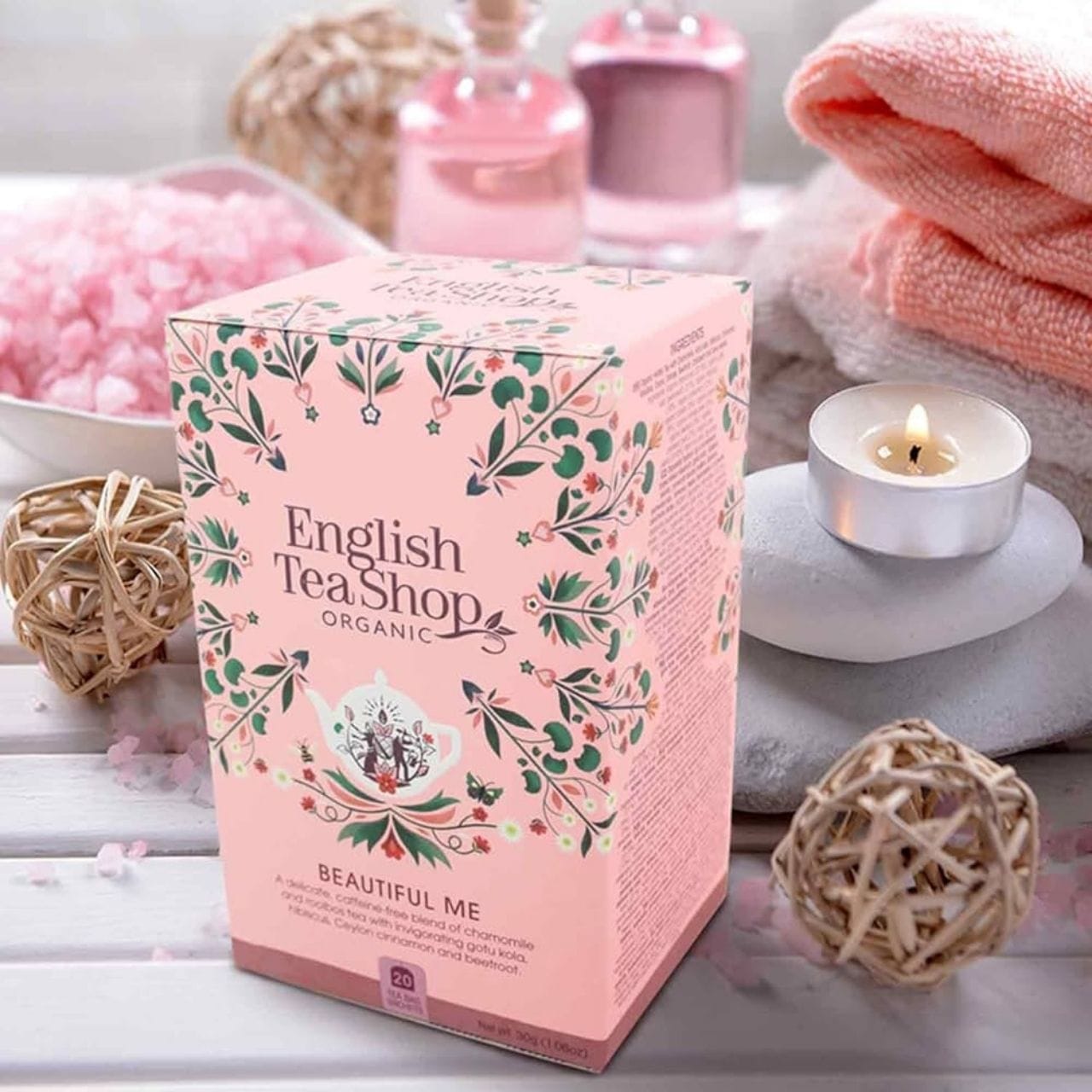 Feel beautiful from the inside out! English Tea Shop Beautiful Me is a caffeine-free, organic blend combining mild chamomile with cleansing gotu kola.