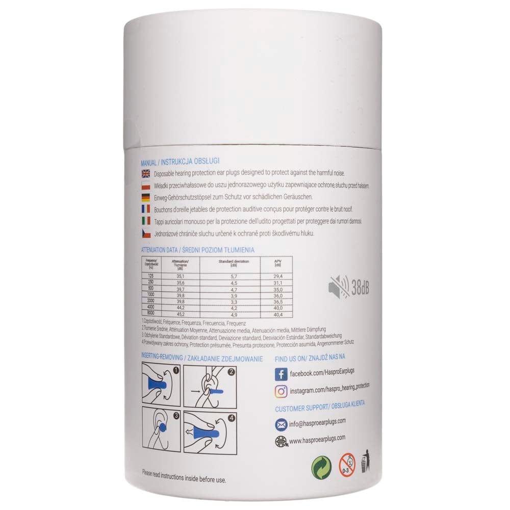 Haspro Tube50 är en modern tubformad förpackning som innehåller 50 par engångsöronproppar tillverkade av bekvämt och extremt mjukt polyuretanskum, som passar mycket enkelt i varje öra på mindre än en minut. Dessutom, levereras varje set med en liten behållare för förvaring av öronpropparna.