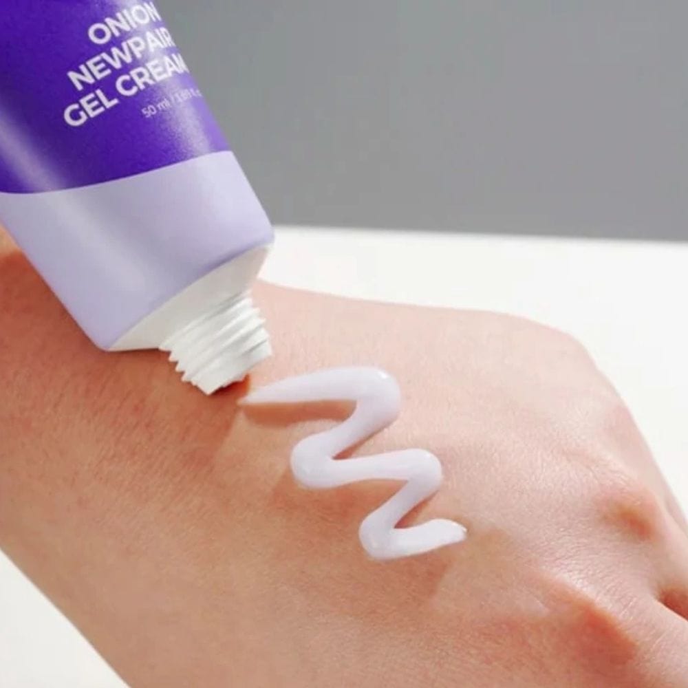 Isntree Onion Newpair Gel Cream till innovativ krämgel med lökextrakt , speciellt framtagen för problemhud med akneärr och missfärgningar. Formulan innehåller niacinamid, tranexaminsyra och natriumheparin för effektiv regenerering och ljusare hud. Trippel hyaluronsyra och panthenol ger intensiv återfuktning utan att tynga ner huden. Den lätta konsistensen är idealisk både som dagkräm under smink och som nattvård.