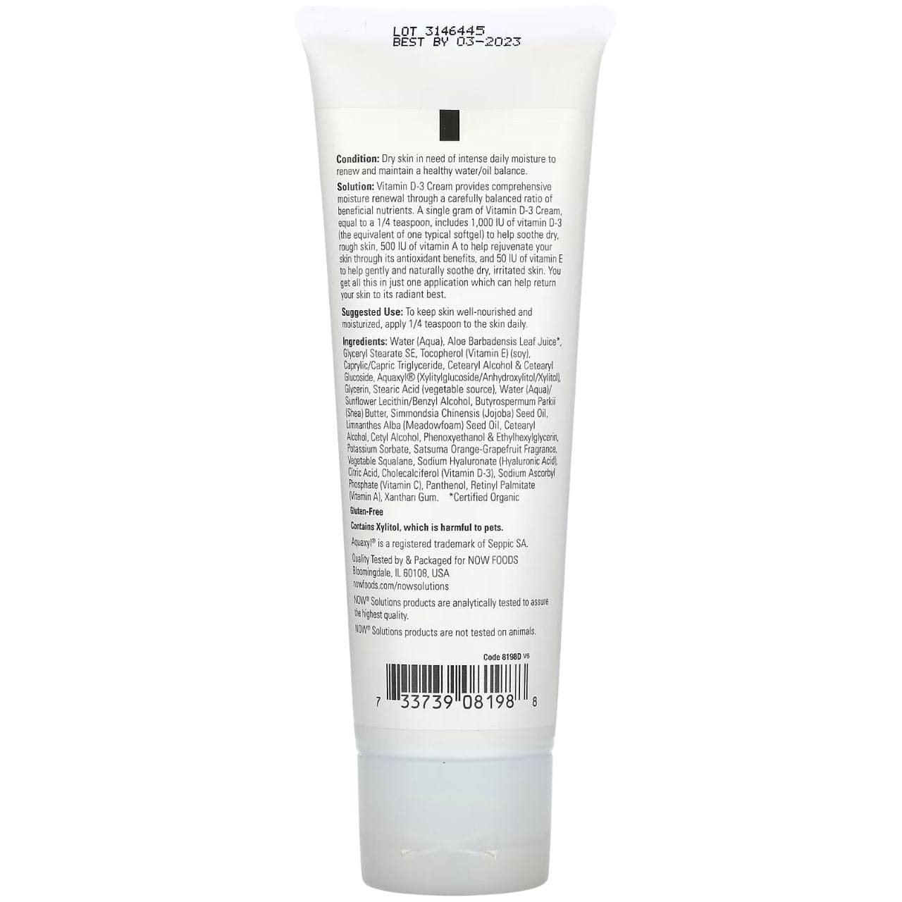 Now Solutions Body Cream with Vitamin D3 is a nourishing cream for the daily care of dry and rough skin. It contains 1000 IU of vitamin D3 per 1 g of cream, as well as vitamins A and E, shea butter, squalane and hyaluronic acid. It helps restore the skin’s softness, comfort and proper moisture levels.