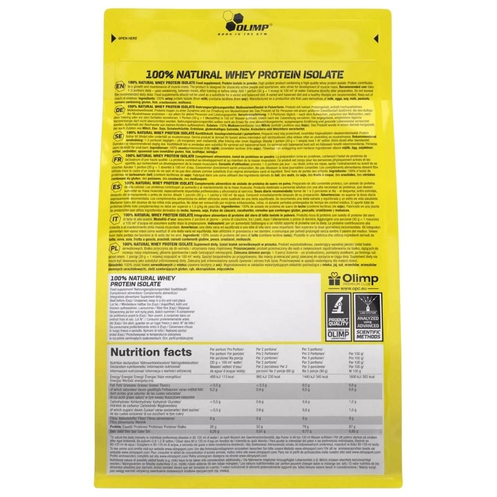 Olimp 100% Natural Whey Protein Isolate egenskaper: