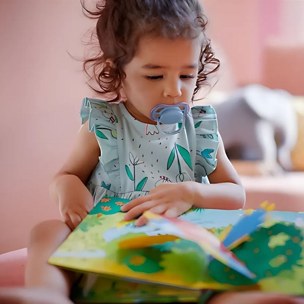 Nappen tillgodoser det naturliga sugbehovet som är starkt närvarande hos spädbarn. Den är lämplig för barn i åldern 6-18 månader, och ger komfort och en känsla av säkerhet samtidigt som den stöder en korrekt utveckling av munnen. Den ortodontiska, symmetriska och mjuka silikonnappen är formad för att respektera den naturliga utvecklingen av ditt barns gom, tänder och tandkött.