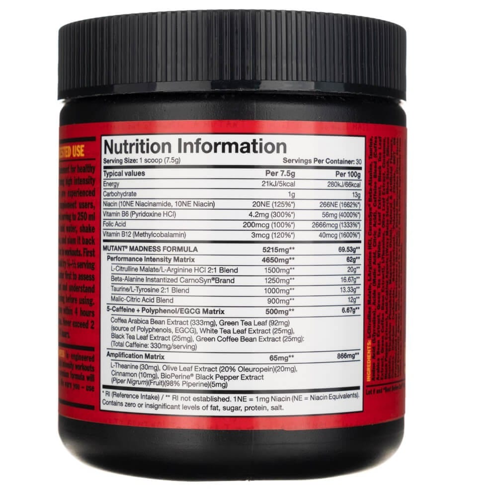 PVL Mutant Madness är ett kosttillskott i pulverform framtaget för träning med högsta intensitet. Mutant Madness innehåller arginin, citrullin, beta-alanin och fler premiumingredienser för att bäst stödja varje träningspass.
