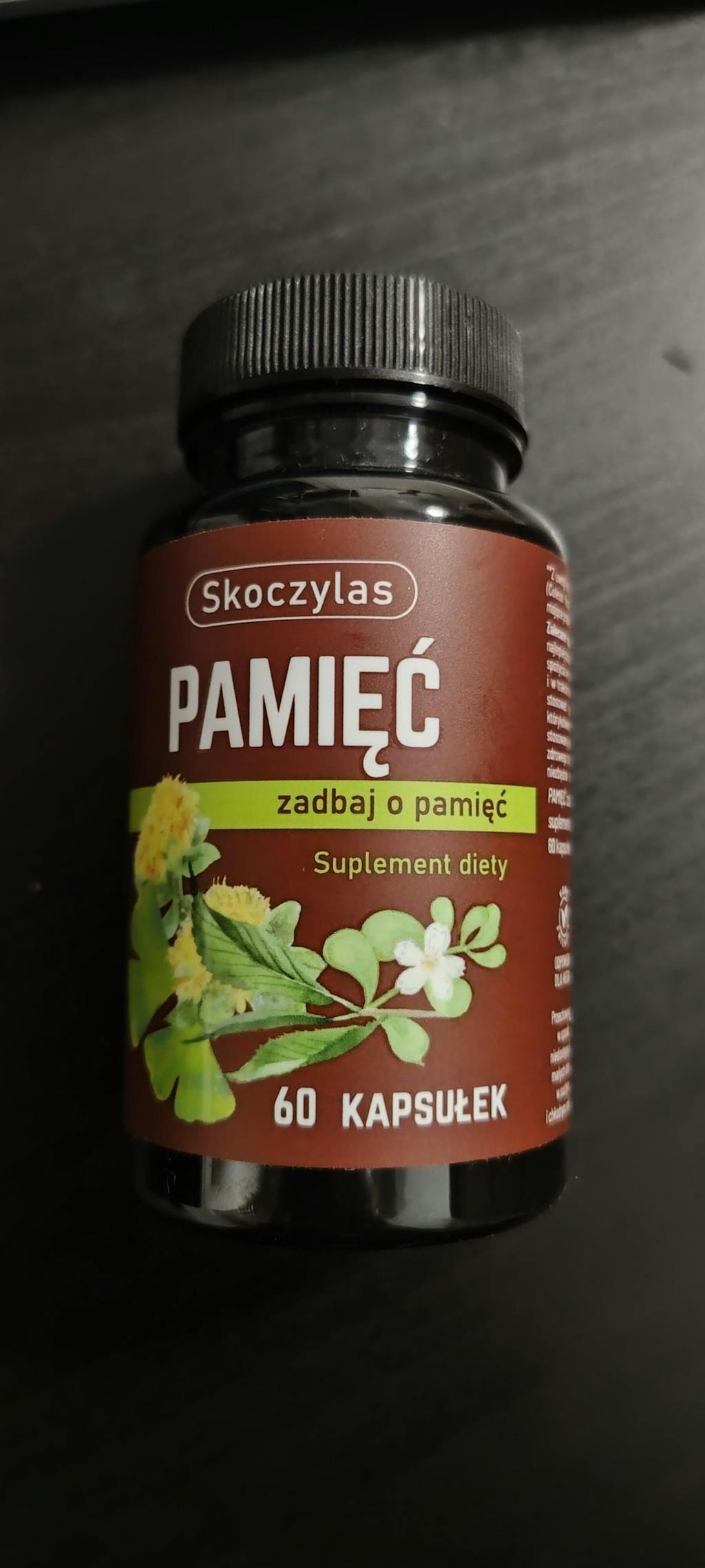 Skoczylas PAMIĘĆ är ett kosttillskott i kapselform. Källa till växtextrakt av bacopa minor, kinesiskt te, ginkgo biloba, indisk nässla och rhodiola rosea.