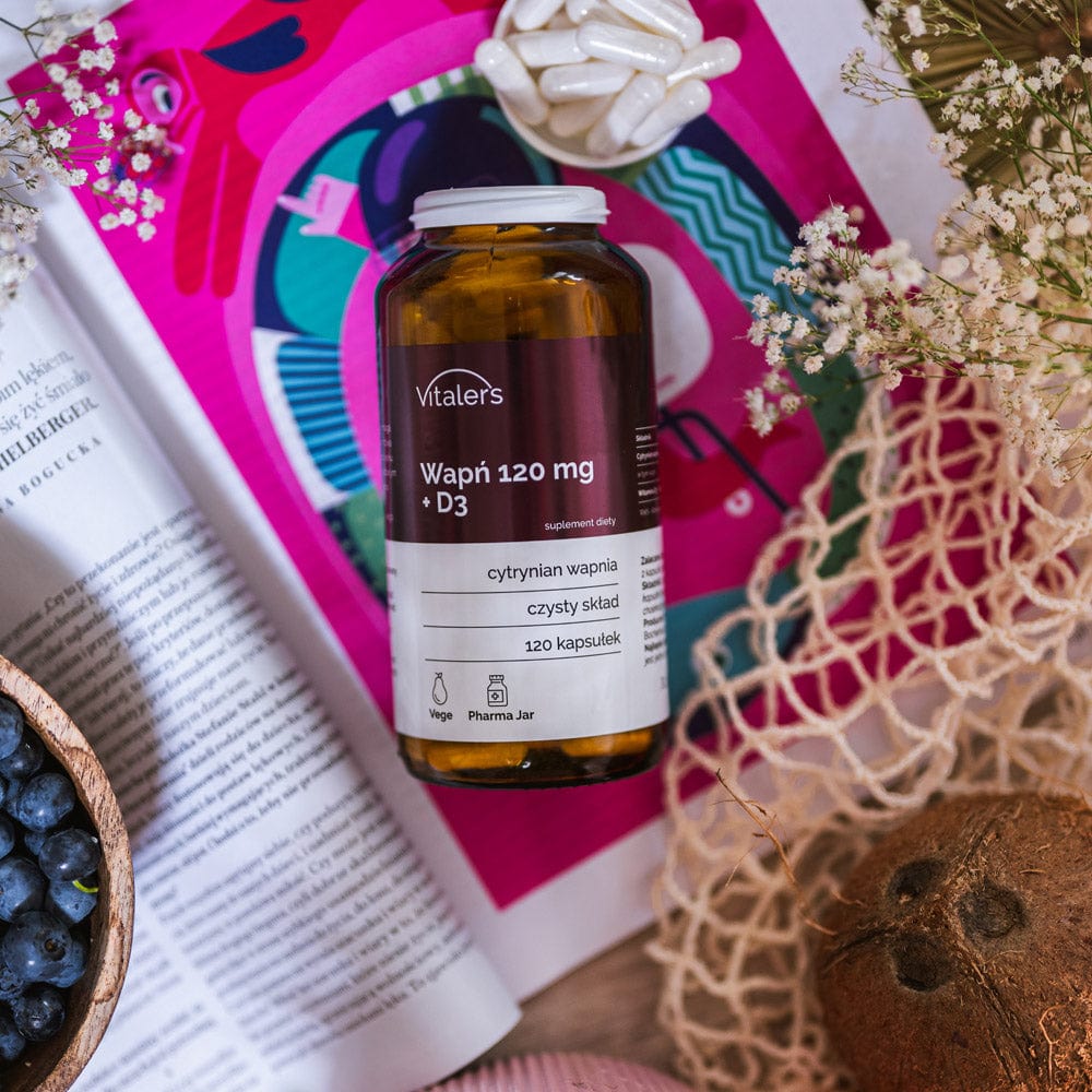 Vitaler's Calcium 120 mg + D3 kosttillskott kombinerar en organisk form av kalcium och vitamin D3, som båda avsevärt ökar de positiva effekterna på benstrukturen. Kalciumcitratet som används i formeln är en form som inte ökar risken för njursten och absorberas mycket bättre än kalciumkarbonat. Kalcium i denna form kan användas även av personer som tar mediciner som minskar utsöndringen av magsaft. Kosttillskottet, kan tack vare sitt vitamin D3-innehåll, minska risken för frakturer, förlust av benmassa, och kan samtidigt ha en gynnsam effekt på det allmänna välbefinnandet hos kvinnor efter klimakteriet.