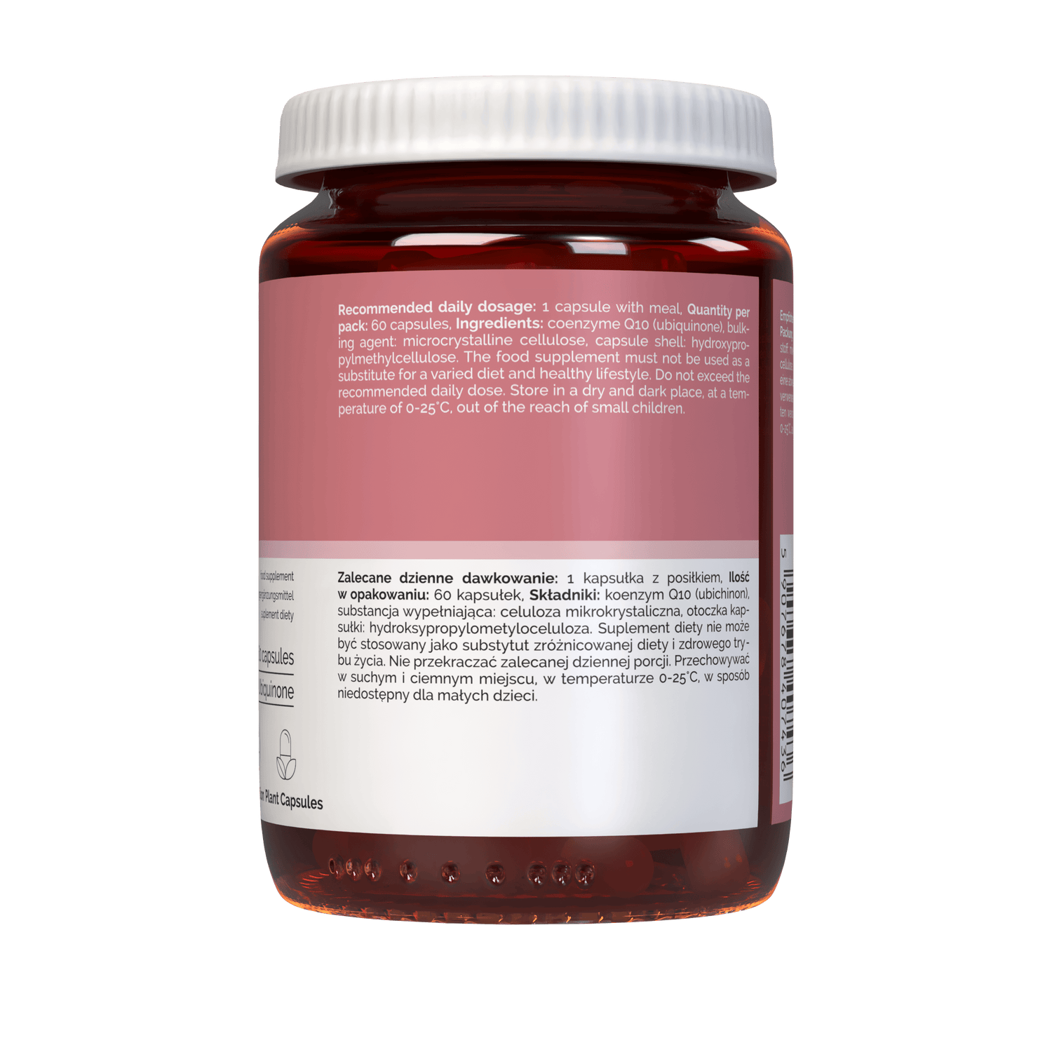 Coenzym Q10 (ubichinon), fyllnadsmedel: mikrokristallin cellulosa, kapselskal (hydroxipropylmetylcellulosa).